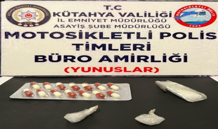 Kütahya’da Motosikletli Polis Timlerince durdurulan bir araçta ve 2 şahsın yapılan üst aramasında, 2,28 gram metamfetamin, 0,97 gram esrar ve 14 adet galara kapsül ele geçirildi.