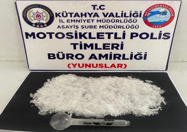 Kütahya’da Motosikletli Polis Timlerince 2 şahsın yapılan üst ve eşya aramasında 83.20 gram metamfetamin ve 1 adet payp ele geçirildi.