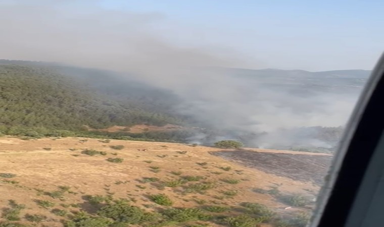 Kütahya’nın Tavşanlı ilçesi Balıköy beldesi Gevrekler köyü yakınlarındaki ormanda çıkan yangına müdahale sürerken, söndürme çalışmaları helikopterden görüntülendi.
