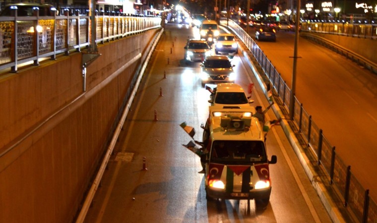 Türkiye ve Filistin bayraklarının birlikte taşındığı konvoyda işgalciler aleyhine, Filistin lehine sloganlar atıldı.
