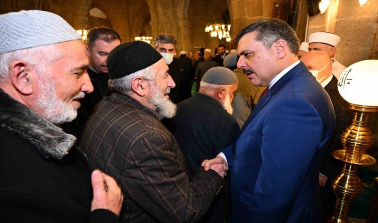 Hatim duası ve cuma namazının ardından Erzurum Valisi Mustafa Çiftçi vatandaşlarla tokalaşarak cami cemaatinin mübarek üç aylarını tebrik etti.
