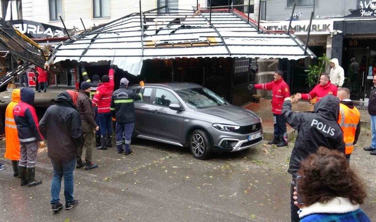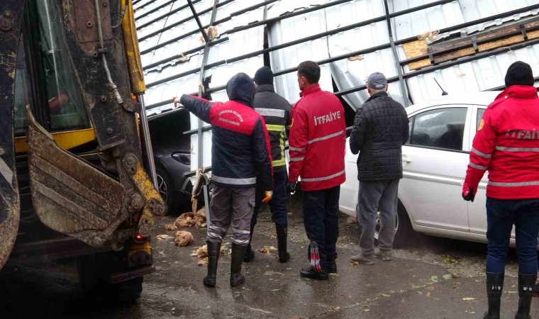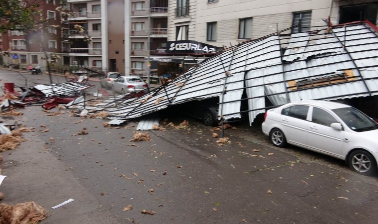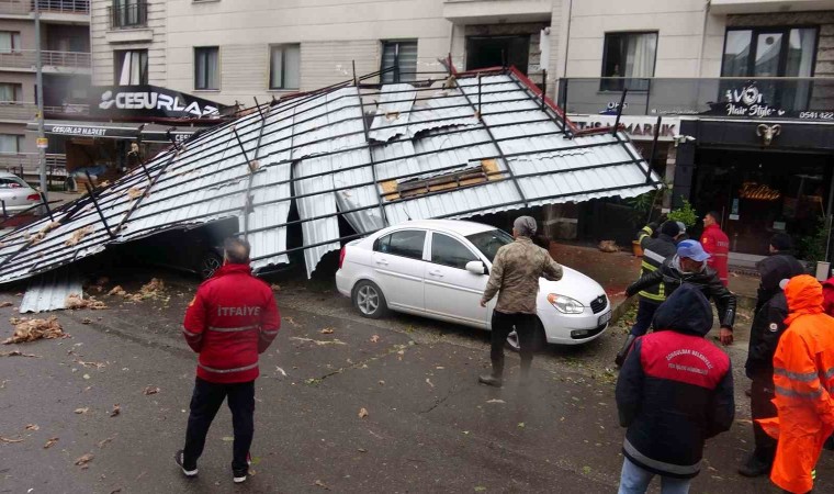 Zonguldak’ta saatteki hızı 80 kilometreyi aşan kuvvetli fırtına sebebiyle bazı evlerin çatıları uçtu. Kopan parçaların altında kalan park halindeki araçlar zarar gördü.