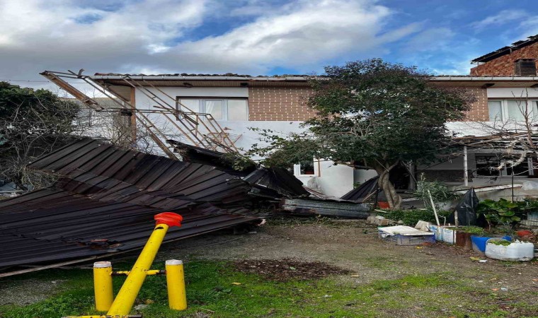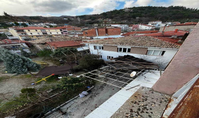 Denizli’nin Buldan ilçesinde gece saatlerinden itibaren etkili olan kuvvetli rüzgar çatıları uçurdu. Çatılardan kopan parçalar bazı araçlara zarar verdi.