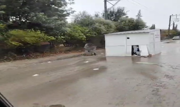 Öte yandan, kuvvetli rüzgar nedeniyle çöp konteynırları ve esnaflara ait eşyalar da yolla savruldu. Yağış ve kuvvetli rüzgar etkili olmaya devam ediyor.