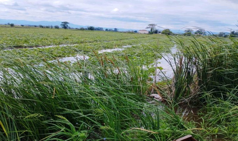 Samsun’da etkili olan kuvvetli yağış Bafra Ovası’nda tarım arazilerini vurdu, karpuz tarlaları sular altında kaldı.