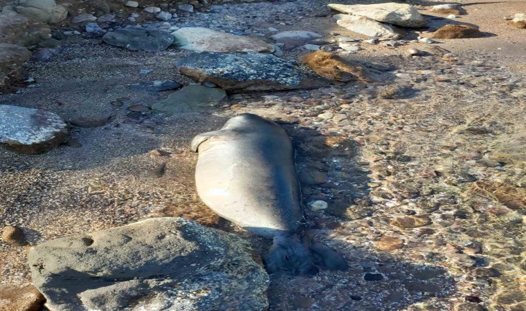 Muğla’nın Bodrum ilçesinde kuyruğunda yarası olan yavru Akdeniz foku, ölü halde kıyıya vurdu.