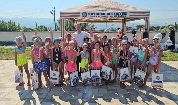 Aydın’ın Kuyucak ilçesinde yaz döneminde açılan yüzme kursları tamamlandı. Modern havuzlarda eğitmen ve cankurtaranlar eşliğinde yüzme öğrenen çocuklar öğrendiklerini sergiledi.