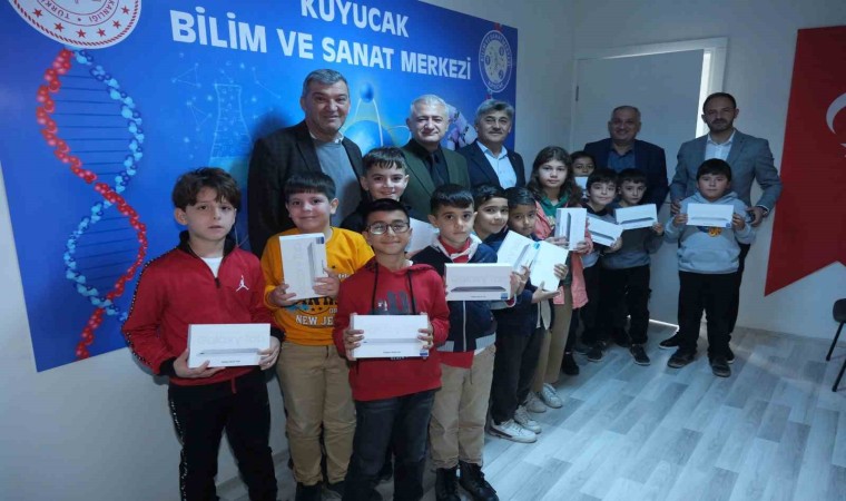 Kuyucak Bilim ve Sanat Merkezi’nde eğitim gören 13 öğrenciye tabletlerini hediye eden Kaymakam Niyazi, Başkan Çömden ve Dernek Başkanı Tırkaz, öğrencilerle daha sonra sohbet etti. Okul Müdürü Sade, okul hakkında bilgiler verdi.