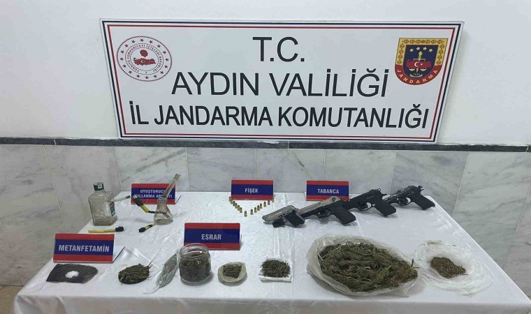 Aydın İl Jandarma Komutanlığı KOM Şube Müdürlüğü ve Kuyucak İlçe Jandarma Komutanlığı tarafından uyuşturucu madde kullanımı ve ticaretinin önlenmesine yönelik çalışmalar aralıksız sürüyor. Edinilen bilgiye göre, uyuşturucu madde imal ve ticaretini yapan şahsa yönelik koordineli çalışmada Kuyucak ilçesinde Ş.Ç. isimli şüpheli şahsın ikametine operasyon düzenlendi. Operasyon çerçevesinde yapılan aramalarda; 1 kilogram 72 gram kubar esrar, 4 adet tabanca, 15 adet tabanca fişeği, 2 adet uyuşturucu kullanma aparatı ve bir miktar metamfetamin ele geçirildi. Şüpheli şahıs Ş.Ç. de ekipler tarafından yakalanarak gözaltına alındı.