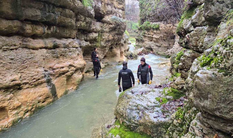 Kanyondaki çalışmaların tamamlanmasının ardından şüphelilerin geçtiği güzergahlarda da arama tarama çalışmaları sürüyor.