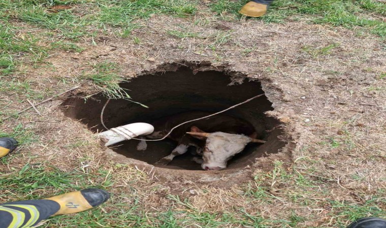 Olay yerine gelen itfaiye ekipleri kepçe yardımıyla ineği kuyudan çıkarmayı başardılar. Sağlık durumu iyi olan inek sahibine teslim edildi.