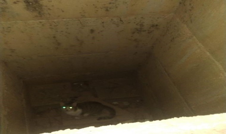 Hatay’da kuyuya düşen kedi, itfaiye ekipleri tarafından kurtarıldı.