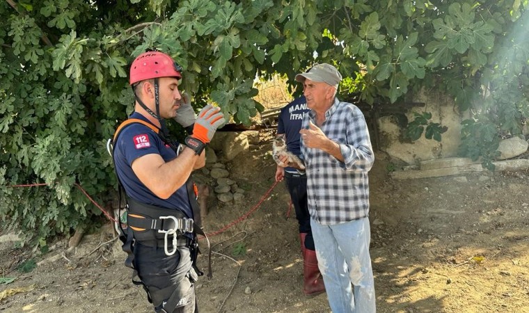 Aşağıkoçaklar Mahallesi’nde üzüm bağının içindeki kuyudan kedi sesi duyan Seydi Tolan (60), Manisa Büyükşehir Belediyesi İtfaiye Dairesi Başkanlığına bağlı Sarıgöl itfaiyesini arayıp yardım istedi. Kısa sürede olay yerine gelen itfaiye ekipleri, 18 metre derinliğindeki kuyunun içindeki yavru kediyi kurtararak doğaya bıraktı.