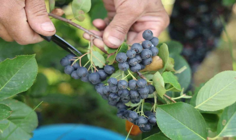 Konya’da, halk arasında ’süper meyve’ olarak bilinen, ana vatanı Kuzey Amerika olan aronya meyvesinin hasadı başladı. Kansere yakalanan eşinin tedavisi sürecinde aronya ile tanışan ve sonrasında yetiştirmeye başlayan Tahsin Tosun’un bahçesindeki aronya meyveleri tek tek elle toplanıyor.