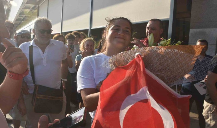 Kuzey Kanalı’nı yüzerek 11 saat 48 dakikada geçerek adını tarihe yazdıran 22 yaşındaki Aysu Türkoğlu, Milas-Bodrum Havalimanı’nda coşkuyla karşılandı.
