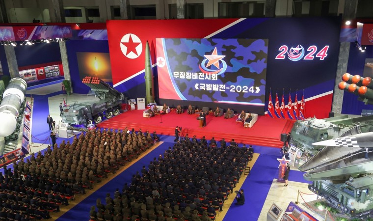 Kuzey Kore lideri Kim Jong-un, başkent Pyongyang’da dün başlayan "Ulusal Savunma Gelişimi-2024" fuarının açılışında bir konuşma gerçekleştirdi. Konuşmasında milli savunma sanayiinin önemine vurgu yapan Kim, “Düşman güçlerin benzeri görülmemiş yaptırım ve ablukaları, milli ve bağımsız savunma sanayimizi güçlendirmenin gerekli olduğunu ortaya koymaktadır” dedi.