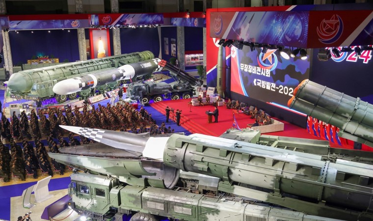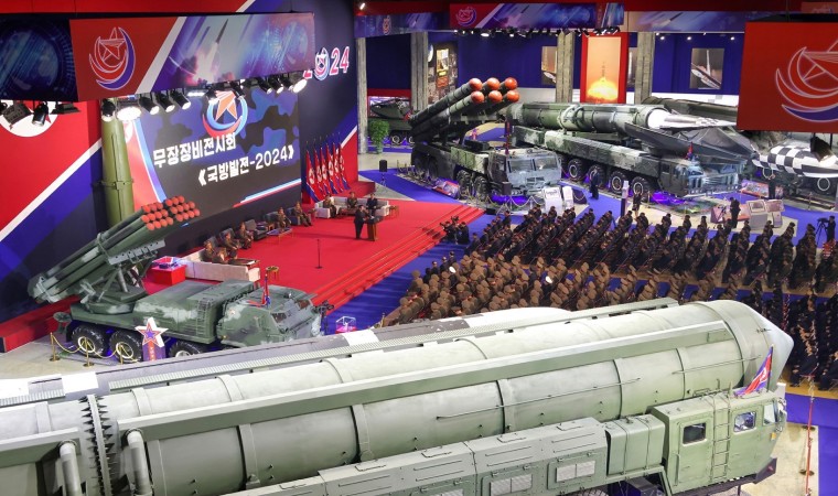 "Ulusal Savunma Gelişimi-2024" fuarında stratejik ve taktik silahlar da dahil olmak üzere ülkenin en son teknoloji savunma ürünlerinin sergilendiği açıklandı. Kuzey Kore hükümeti tarafından yayınlanan fotoğraflarda kıtalararası balistik ve hipersonik füzelerin yanı sıra dronlar, çoklu roketatarlar ve tankların da yer aldığı görüldü. Ayrıca Kuzey Kore ordusuna ait savaş uçaklarının fuar alanı semalarında gösteri uçuşu yaptığı bildirildi.