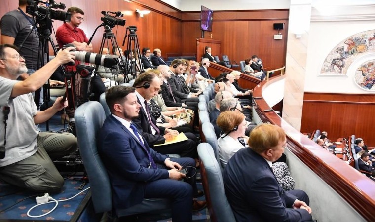 Makedonya Sosyal Demokratlar Birliği (SDSM) ve Levica (SOL) parti milletvekilleri karşı oy kullanırken, 3 Türk milletvekilinin de bulunduğu ve toplamda 18 milletvekili bulunan Demokratik Bütünleşme Birliği (BDİ) öncülüğündeki “Avrupa Cephesi İttifakı” milletvekilleri hükümet oylaması öncesinde genel kurulu terk etti.
