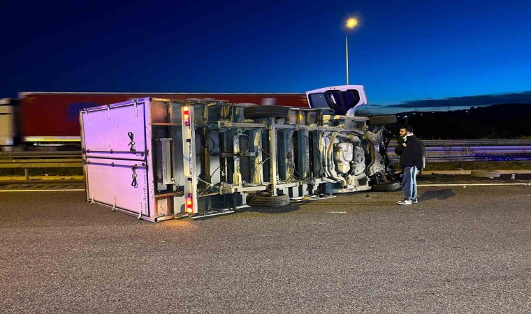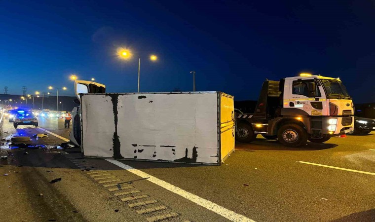 Öte yandan, kaza sebebiyle Kuzey Marmara Otoyolu’nun İstanbul istikameti 3 şeridi trafiğe kapandı. Jandarma ekiplerince tek şeritten kontrollü geçişler sağlanırken, uzun araç kuyruğu oluştu.