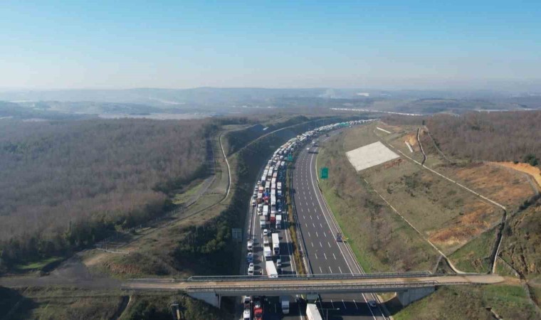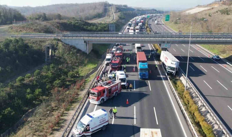 Ayrı olay yeri kazaya karışan 3 araç ve kazanın ardından oluşan trafik yoğunluğu dron kamerasıyla görüntülendi.