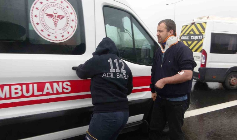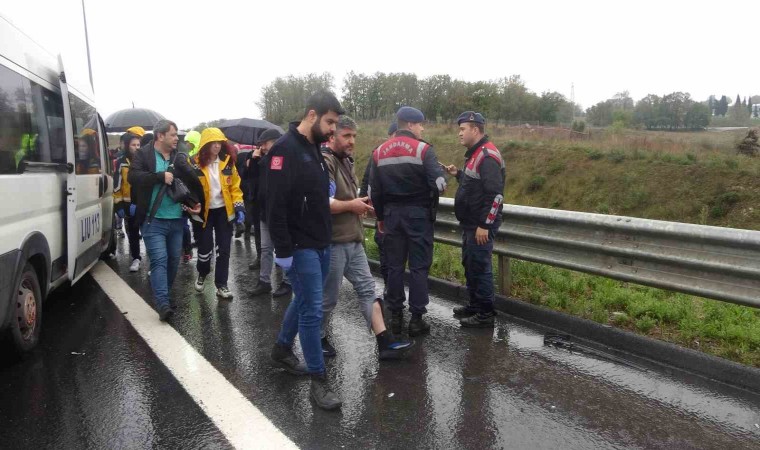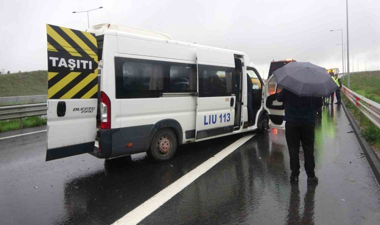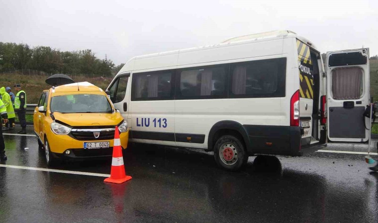 Kuzey Marmara Otoyolu Kocaeli geçişinde işçileri taşıyan servis minibüsü ile ticari taksinin çarpışması neticesinde meydana gelen kazada 13 kişi yaralandı.