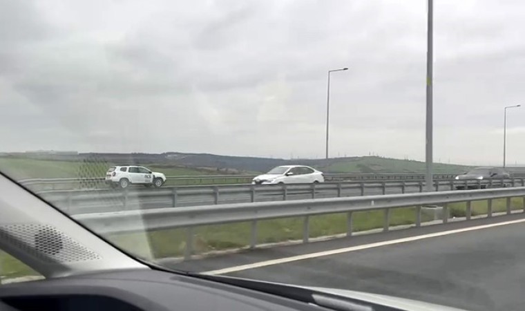 Kuzey Marmara Otoyolu Tayakadın Mevkii’nde ters yöne giren sürücü, kilometrelerce hızla ilerledi. Trafiğe aldırış etmeden ters yönde ilerleyen sürücünün, akaryakıt istasyonuna ulaşmaya çalıştığı öğrenildi. O anlar bir başka sürücü tarafından cep telefonu kamerasıyla görüntülendi.