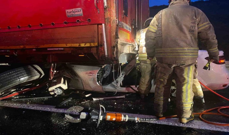 Kuzey Marmara Otoyolu’nda emniyet şeridinde park halindeki tıra arkadan çarpan otomobilin sürücüsü hayatını kaybetti.