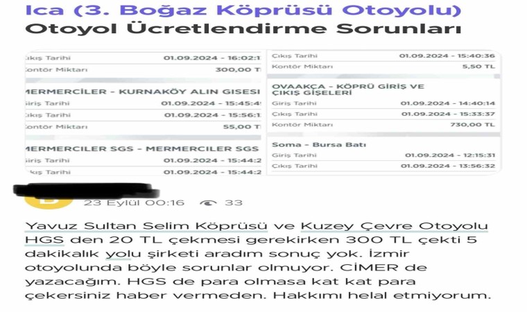 İstanbul Havalimanı’ndan Atatürk Havalimanı istikametine gitmek isteyen sürücüler yanlış bir dönüş yapmaları halinde Kilyos’a kadar gitmek zorunda kalıyor. Kuzey Marmara Otoyolu’nu kullanan sürücüler, bir sapağı kaçırmanın bedelini ağır ödüyor. İstanbul Havalimanı’ndan Atatürk Havalimanı istikametine gitmek isteyen sürücüler yanlış bir dönüş yapmaları halinde Kilyos’a kadar gitmek zorunda kalıyor. Uskumruköy gişelerine kadar 18,5 kilometre gidiş, 18,5 kilometre tekrardan dönüş yapmak zorunda kalan sürücüler hem 37 kilometre fazladan yol hem de 100 TL’yi bulan ek ücretle karşı karşıya kalıyor. Yol üzerinde Kilyos’a kadar herhangi bir dönüşün olmaması vatandaşları çileden çıkardı.