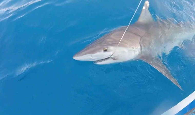 Antalya’da denizden yaklaşık 200 metre açıkta balık avlayan Ali Varol isimli amatör balıkçının oltasına 25 kilo ağırlığında köpek balığı takıldı. Köpek balığını görünce şaşkınlık yaşayan Ali Varol, şaşkınlığı atlatıp misinayı çekmeye devam ederken, misinayı koparan balık gözden kayboldu.