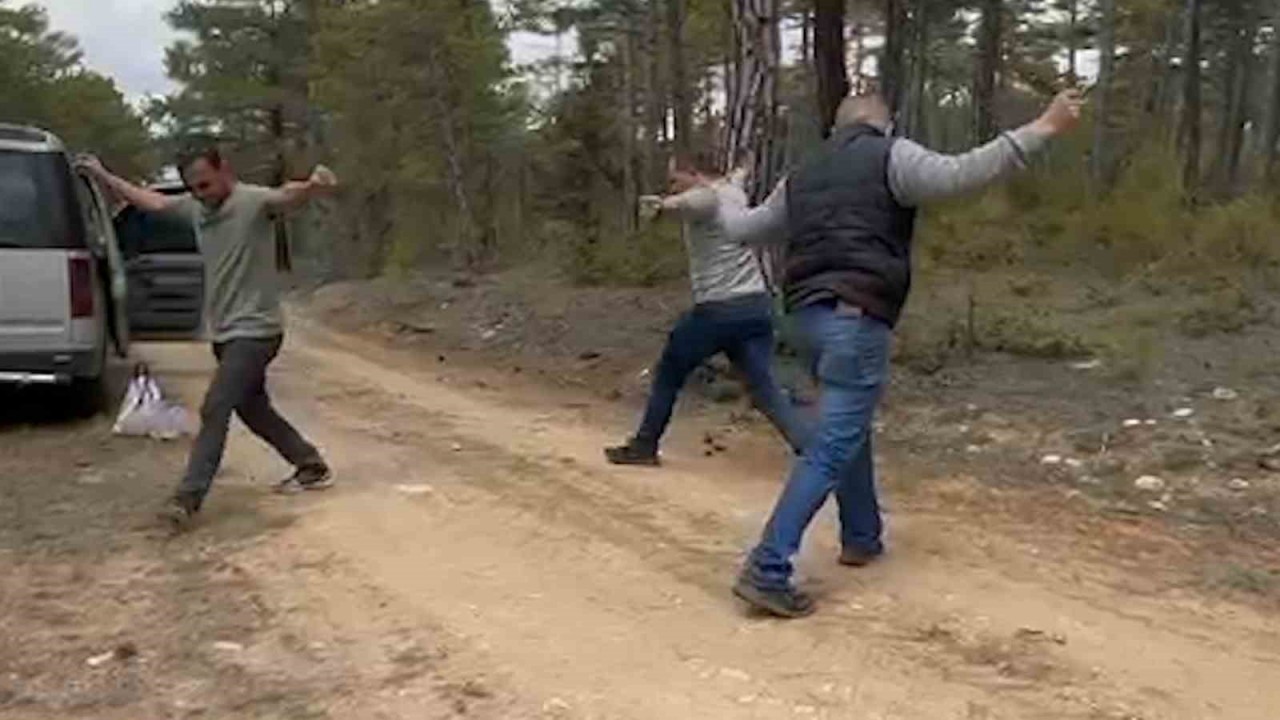 ORMANDA "KUZUGÖBEĞİ" MANTARINDAN ÇOKÇA BULAN 3 YÖRÜK ARKADAŞ, ORMANLIK ALANDA ZEYBEK OYNAYARAK KUTLAMA YAPTI. 3 KAFADARIN NEŞELİ ANLARI SOSYAL MEDYADA İKİ GÜNDE 1 MİLYON İZLENMEYE ULAŞTI.