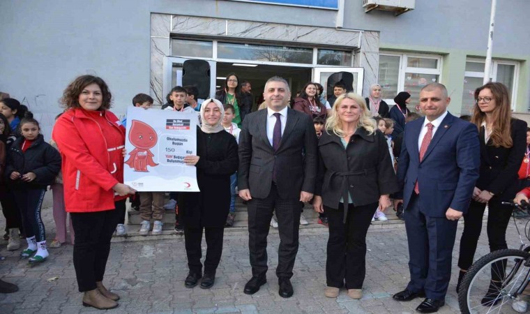 Çanakkale’nin Lapseki ilçesinde Kaymakamlık, İlçe Milli Eğitim Müdürlüğü ve Lapseki Belediyesi koordinasyonunda Türk Kızılay tarafından yapılan kan ve kök hücre bağışı kampanyasında dereceye giren bağışçılara bisiklet ve madalya takdim edildi.
