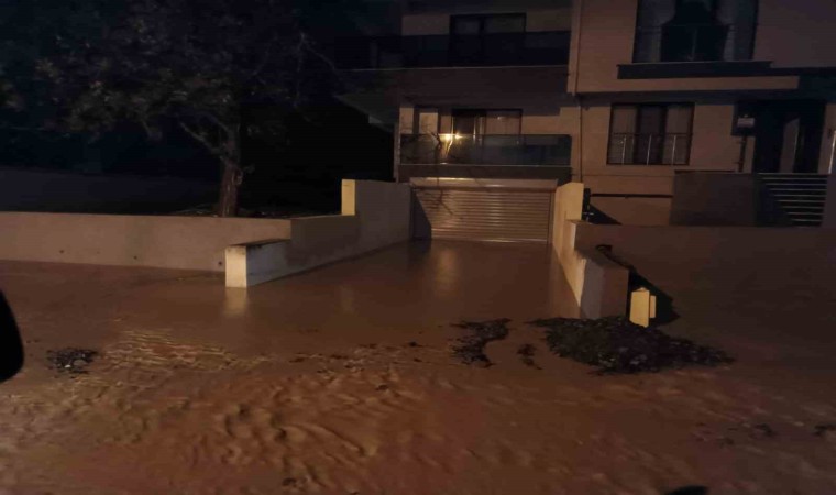 Çanakkale’nin Lapseki ilçesinde akşam saatlerinden itibaren başlayan sağanak yağış nedeniyle caddeler göle döndü, evleri su bastı.