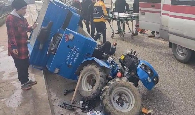 Sakarya’nın Akyazı ilçesinde pat pat olarak adlandırılan tarım aracının lastiğinin çıkması neticesinde meydana gelen kazada sürücü yaralandı.