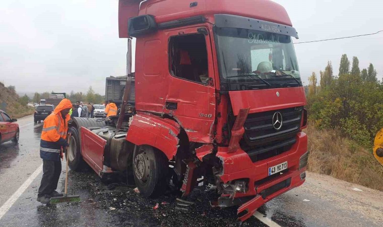 Ankara’da lastiği patladığı için kontrolden çıkan kamyon, karşı yoldan gelen başka bir kamyonla çarpıştı. Kazada şans eseri hayatını kaybeden veya yaralanan olmadı.