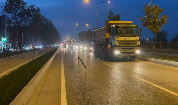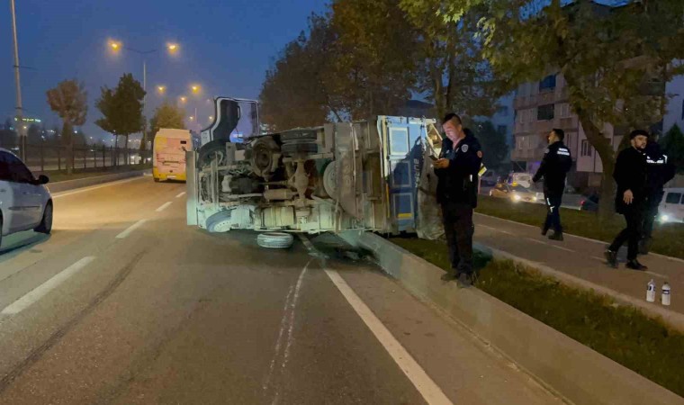 Kaza, saat 18.00 sıralarında Bursa-Ankara karayolu İnegöl girişinde meydana geldi. Bursa istikametinden İnegöl’e seyir halinde olan sürücü Tayfun C. (50) yönetimindeki 16 BBK 201 plakalı kamyonet, arka lastiğinin patlaması sonucu kontrolden çıkarak devrilip sürüklendi. Kamyonetin kasasındaki paletler yola saçıldı. Kaza sonucu şans eseri yaralanan olmadı.