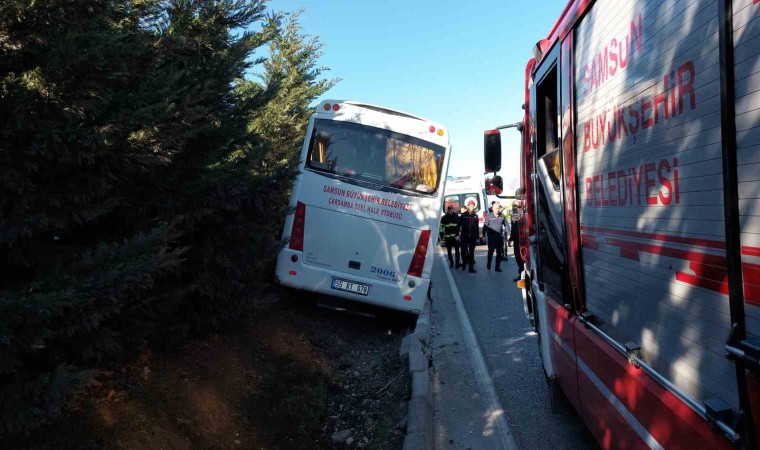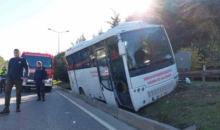 Samsun’da lastiği patlayan özel halk otobüsünün refüje çıktığı kazada 1 yolcu yaralandı.