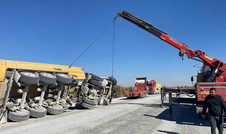 Afyonkarahisar’da lastiği patladıktan sonra yol kenarına devrilen tırın sürücüsü yaralanırken, kaza esnasında yolun boş olması yaşanabilecek facianın önüne geçildi.