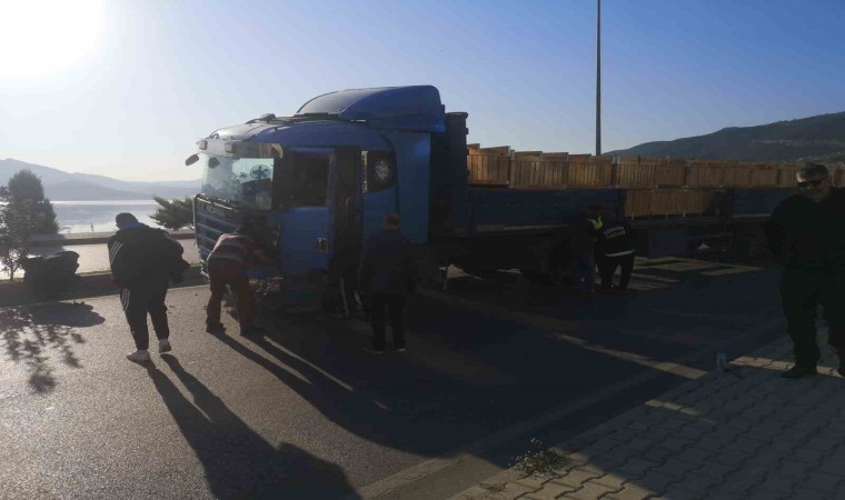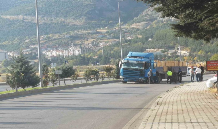 Isparta’nın Eğirdir ilçesinde palsan kasası yüklü tırın lastiğinin patlaması sonucu direksiyon hakimiyetini kaybederek karşı şeride geçti. Ekipler tarafından yol bir süre trafiğe kapatıldı.