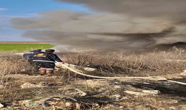 Hüda-i Kaplıcaları Hüseyin Develi Huzur Evi arkası bulunan alanda yanan lastikler korkuya neden oldu.