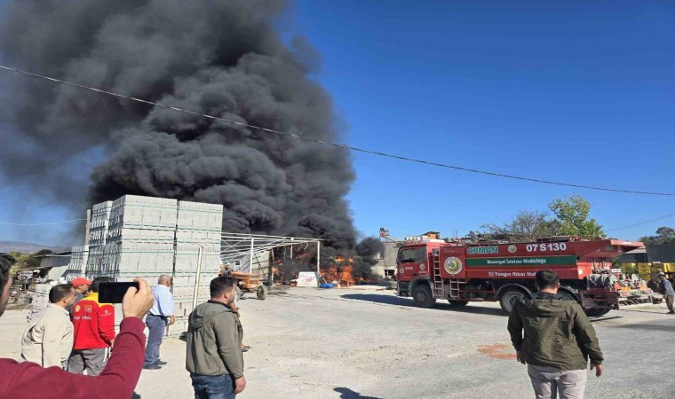 Manavgat’ta bir işyerinin trafosunda başlayan yangın bitişiğinde bulunan 3 bin balya samanın yanmasına neden oldu. Lastiklerinin alev almasıyla gökyüzünde oluşan siyah duman bulutları kilometrelerce uzaktan göründü.