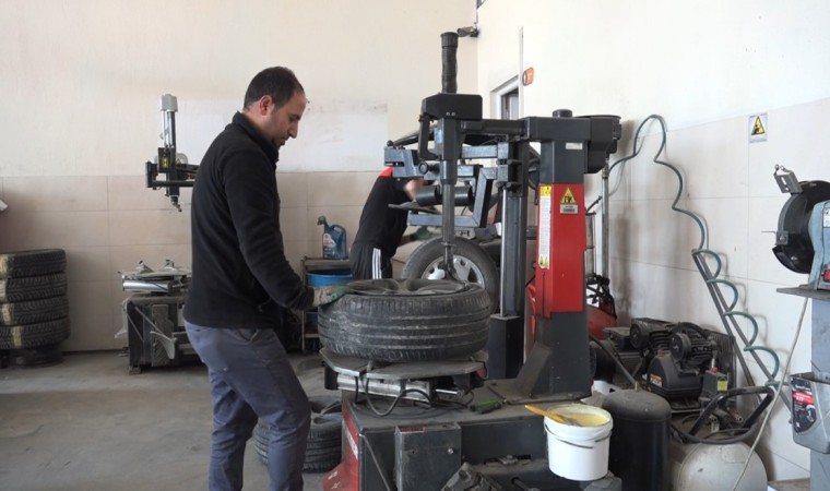 Van’ın Erciş ilçesinde kışlık lastik uygulamasının 1 Nisan 2024 tarihinde sona ermesiyle birlikte lastikçilerde yoğunluk yaşanmaya başlandı.