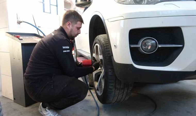 Zorunlu kış lastiği uygulaması öncesi Uşak’ta hava sıcaklıklarının düşmesiyle lastikçilerde hareketlilik başladı.