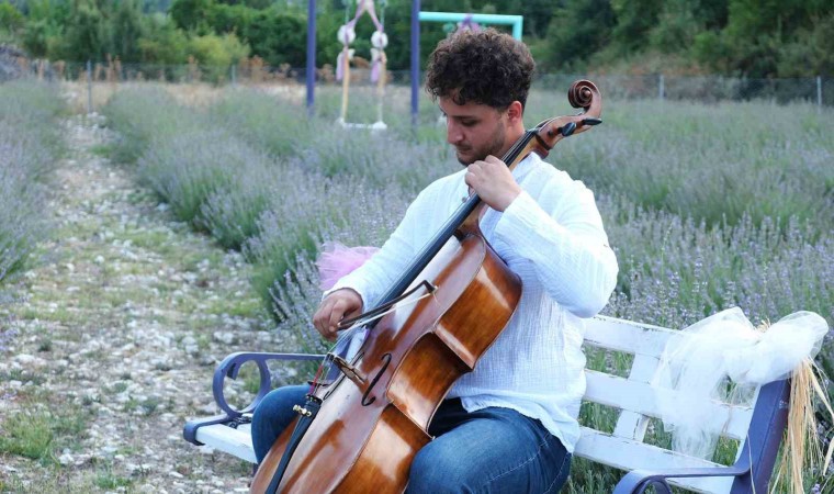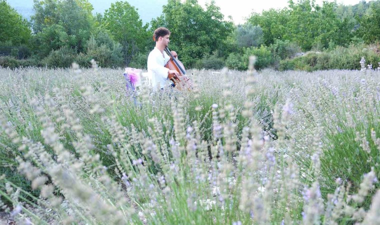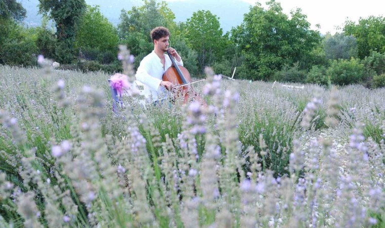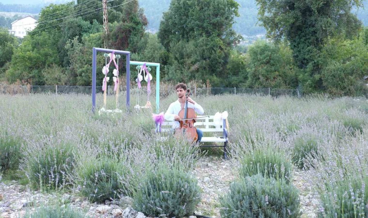 Çellist Emir Asil, Gedelme Yaylası’ndaki Kemer Belediyesi’ne ait lavanta bahçesinde lavanta tanıtım etkinlikleri kapsamında çello çaldı.