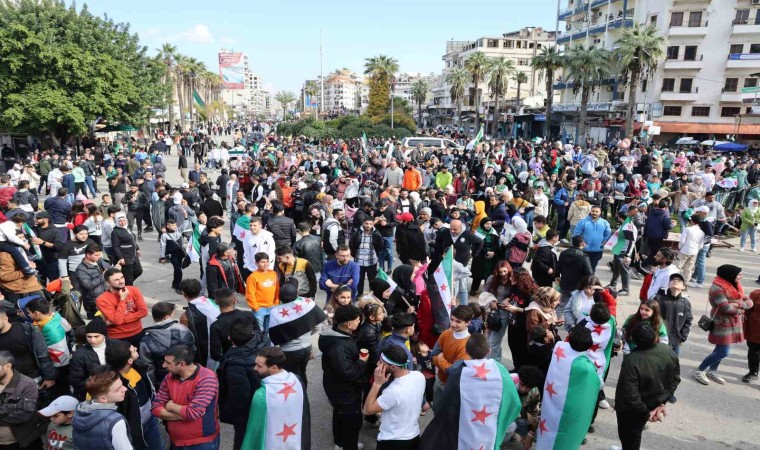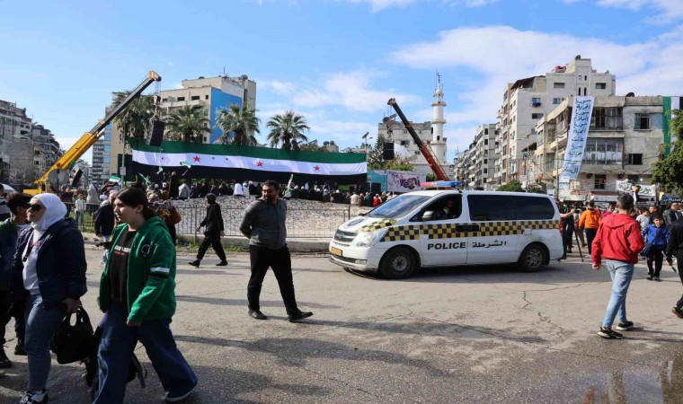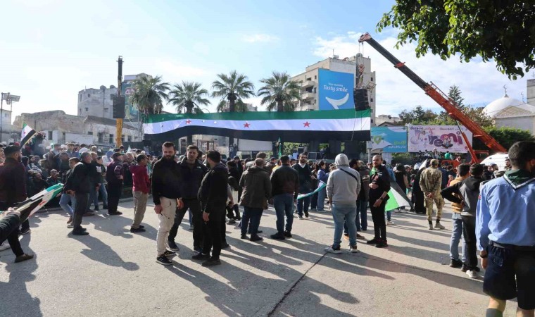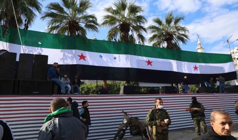 Suriye’de 15 yıllık iç savaşın bitmesiyle özgürlüğüne kavuşan halk kutlamalara devam ediyor. Lazkiye halkı, muhalif askerlerin güvenlik önlemleri altında 15 yıllık Esad esaretinin bitmesini doyasıya kutlarken, kent meydanında dev 3 yıldızlı yeni Suriye bayrağı asıldı.