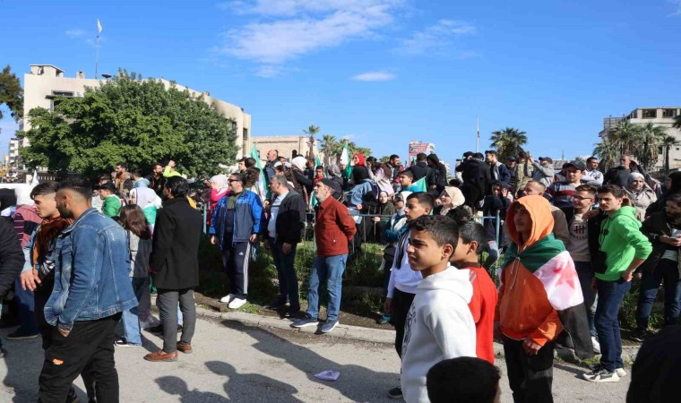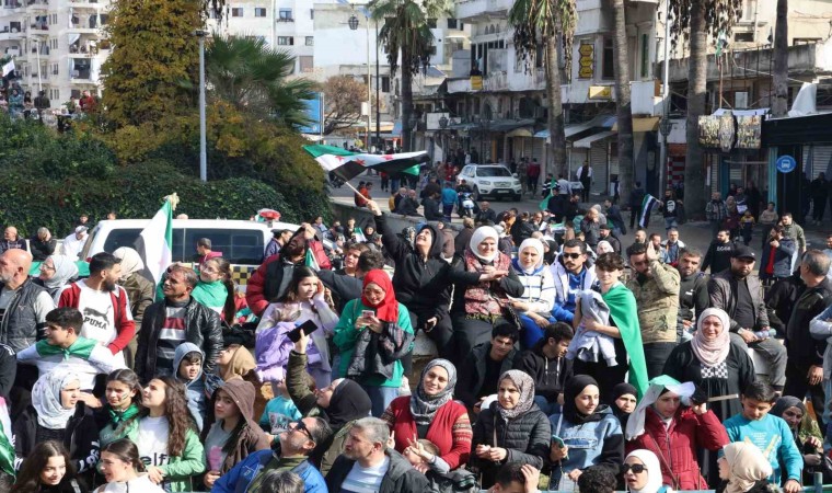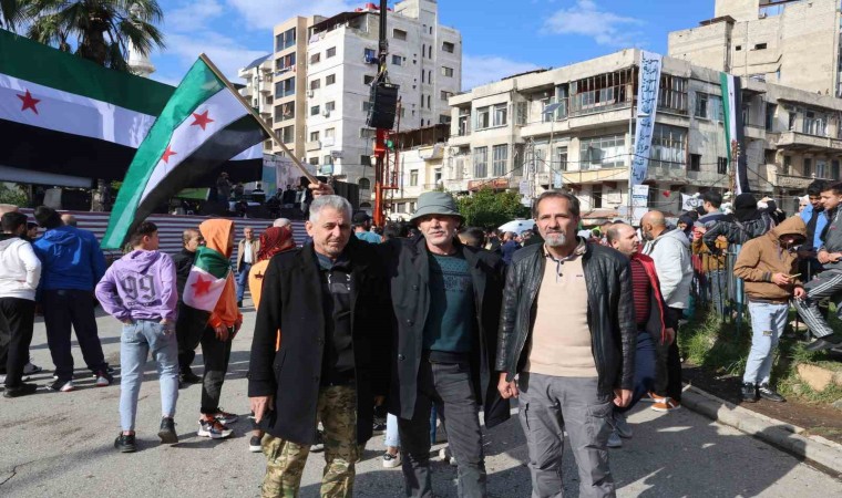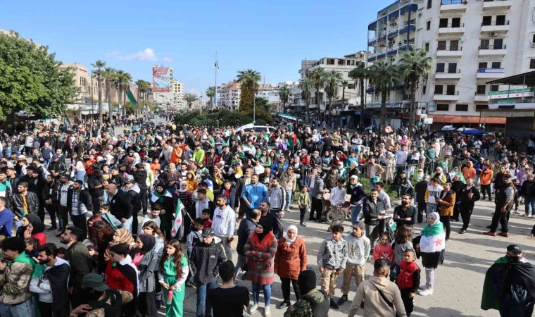 Suriye’nin Lazkiye kentindeki meydanda yüzlerce kişi, muhalif askerlerin güvenlik önlemleri altında özgürlük kutlamaları için bir araya geldi.