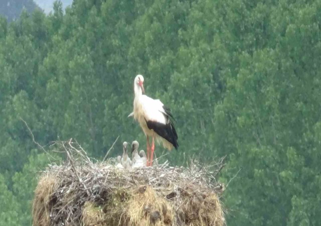 ÇANAKKALE’NİN ÇAN İLÇESİNE BAĞLI KÜÇÜKPAŞA KÖYÜNDE BULUNAN LEYLEK YUVASINDA YUMURTADAN ÇIKAN 4 LEYLEK YAVRUSU GÖRÜNTÜLENDİ.