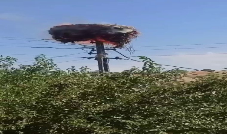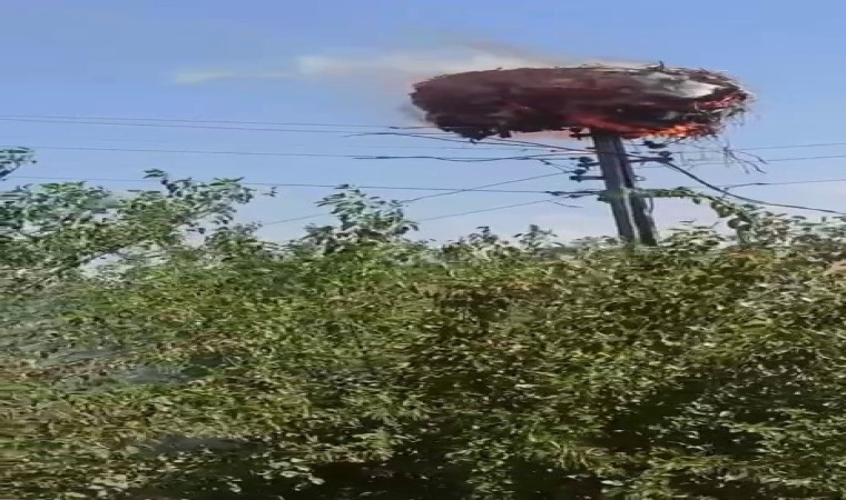 Adıyaman’da, elektrik direği üzerinde bulunan leylek yuvası alev alarak cayır cayır yandı.