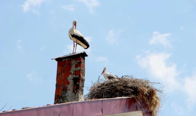 Leylekler ağaç kesilince, 3 katlı binanın çatısını yuvaya çevirdi