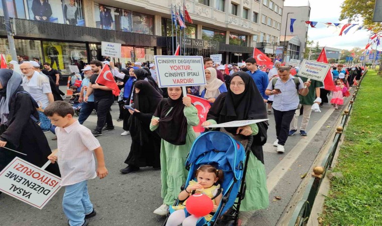 Büyük Aile Platformu, LGBT konusunda duyarlılık oluşturmak amacıyla Fatih Saraçhane Anıt Parkı’nda “Dursun Bu Hayasızca Akın” sloganıyla “Büyük Aile Buluşması ve Sessiz Yürüyüş” düzenledi. Büyük Aile Platformu Genel Sekreteri Serdar Eryılmaz, geçtiğimiz günlerde Şişli’de bir otelde yapılan basın toplantısında toplumu tehdit eden LGBT propagandası ve dayatmasına karşı yapılan yürüyüşe tüm aileleri davet etmişti. Bunun üzerine yüzlerce vatandaş, çocuklarıyla birlikte etkinliğe katıldı. Aileler, bu yıl 3’üncüsü yapılan buluşmaya ellerinde Türk bayrakları ve pankartlarla katıldı. Pankartlarda “Yasal düzenleme istiyoruz”, “Ailemize anayasal koruma istiyoruz”, “Aileye savaş açanlara geçit verme” ifadeleri yer aldı. Programda yapılan protokol konuşmalarının ardından pankartlar ve Türk bayrakları ile gelen kalabalık, Beyazıt Meydanı’na kadar sessiz bir şekilde yürüyüş yaptı. Meydanda ise Büyük Aile Platformu’na bağlı STK’ların genç temsilcileri konuşma yaptı.