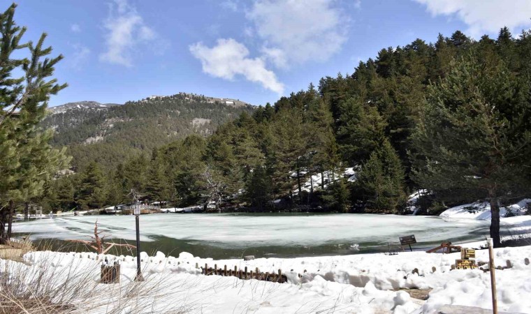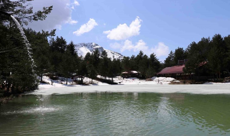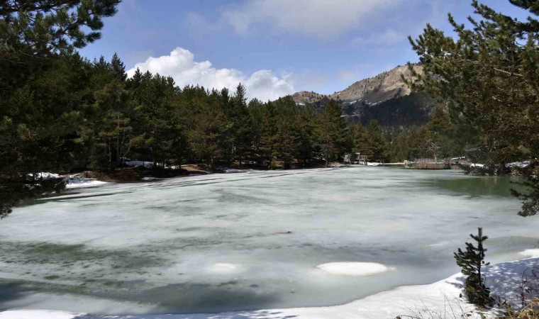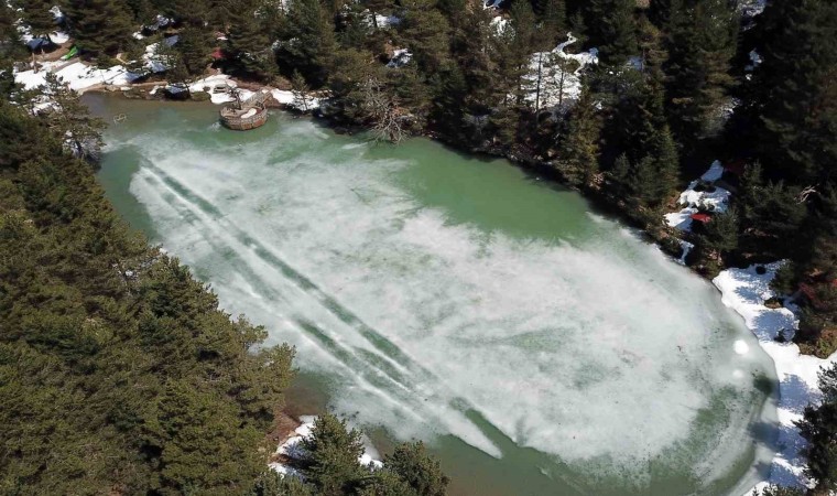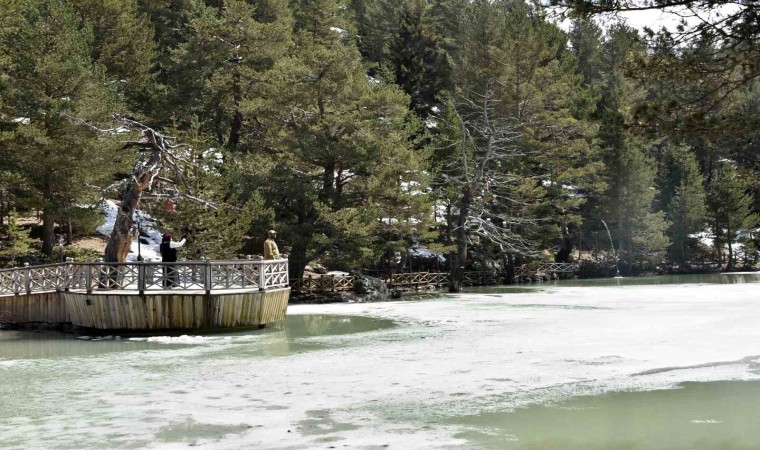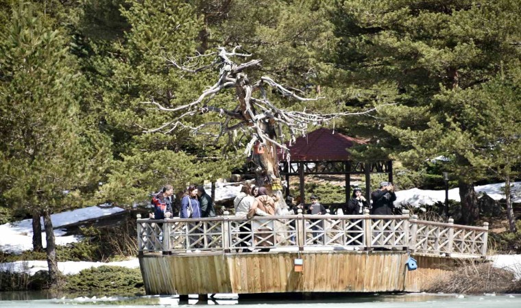 Gümüşhane’nin Torul ilçesi sınırlarındaki Limni Gölü Tabiat Parkı, Ramazan Bayramı tatili nedeniyle sezonu erken açınca hem yüzeyi buz tutan gölü hem de yılın son kar kütlelerini görmek isteyenlerin akınına uğradı.